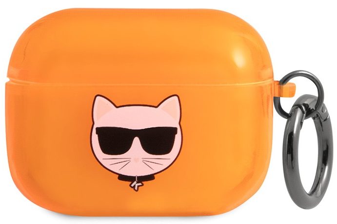 004049 Чехол Karl Lagerfeld для Airpods 1/2 with ring Choupette Transp Orange