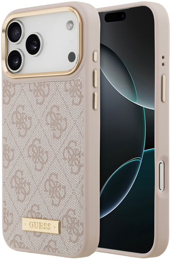008420 Чехол GUESS для iPhone 17 Pro Max PU 4G Plate metal logo and Gold camera Hard Pink (MagSafe)