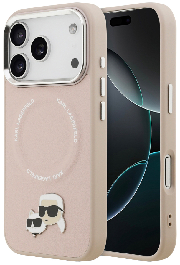 008631 Чехол Karl Lagerfeld для iPhone 17 Pro Max PU NFT Karl & Choupette heads Metal pin & Cam Hard Pink (MagSafe)