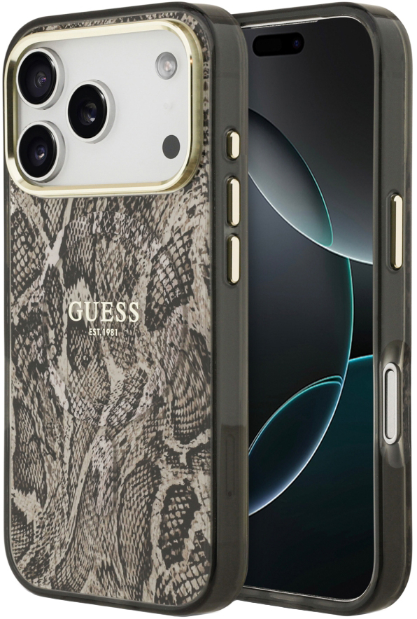 008419 Чехол GUESS для iPhone 17 Pro Max IML Phyton Metal Cam Hard Brown (MagSafe)