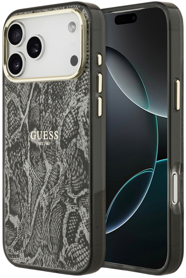 008418 Чехол GUESS для iPhone 17 Pro Max IML Phyton Metal Cam Hard Black (MagSafe)