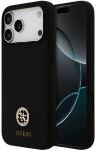 008042 Чехол GUESS для iPhone 17 Pro Max Liquid silicone with 4G Diamond metal logo Hard Black (MagSafe)