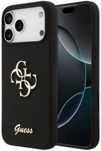 008045 Чехол GUESS для iPhone 17 Pro Max Liquid silicone 4G Big and Script metal logo Hard Black
