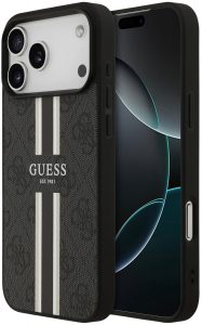 008046 Чехол GUESS для iPhone 17 Pro Max PU 4G Stripes Hard Black (MagSafe)