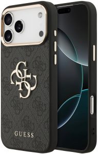 008180 Чехол GUESS для iPhone 17 Pro Max PU Grained leather Classic metal logo Hard Brown (MagSafe)