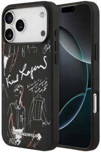 008259 Чехол Karl Lagerfeld для iPhone 17 Pro PU Grained leather Sketch with Metal logo Hard Black (MagSafe)