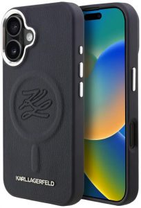007743 Чехол Karl Lagerfeld для iPhone 16 Liquid silicone Signature Metal logo & Camera frame Hard Black