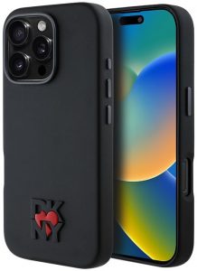 007743 Чехол Karl Lagerfeld для iPhone 16 Liquid silicone Signature Metal logo & Camera frame Hard Black