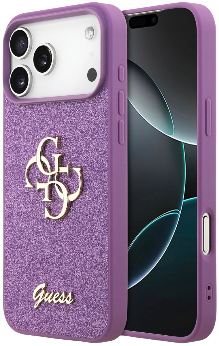 008043 Чехол GUESS для iPhone 17 Pro Max Fixed Glitters 4G Big metal logo Hard Lilac