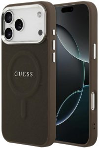 008180 Чехол GUESS для iPhone 17 Pro Max PU Grained leather Classic metal logo Hard Brown (MagSafe)