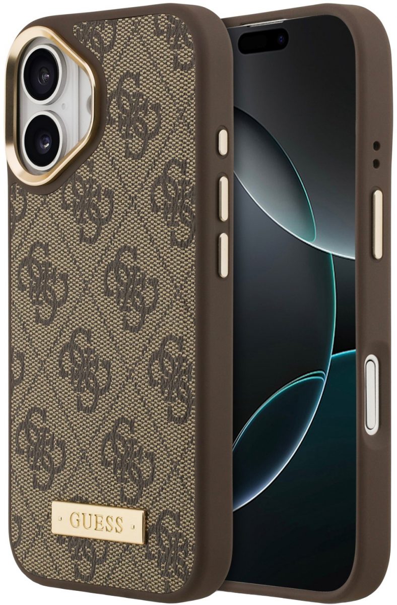 008066 Чехол GUESS для iPhone 17 PU 4G Plate metal logo and Gold camera Hard Brown (MagSafe)