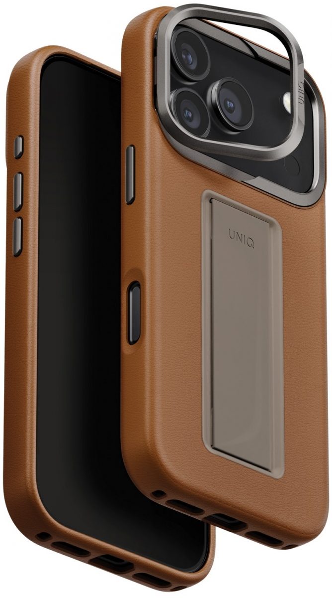 008250 Чехол UNIQ iPnone 17 Pro Heldro PRO Leatherette + FlexGrip & Camera stand Caramel (MagSafe)