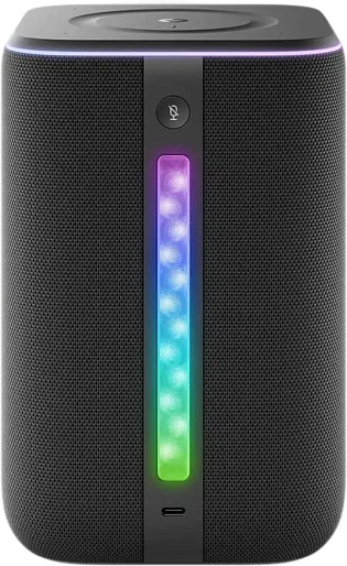 Для питания используется адаптер (через USB-C/PD), а встроенная подсветка и дисплей добавляют визуальную атмосферу: свет и информация отображаются прямо на корпусе, что повышает комфорт в домашней обстановке. Сенсорная панель помогает управлять колонкой вручную, если голос недоступен. Устройство рассчитано на питание от сети — автономный аккумулятор не предусмотрен.