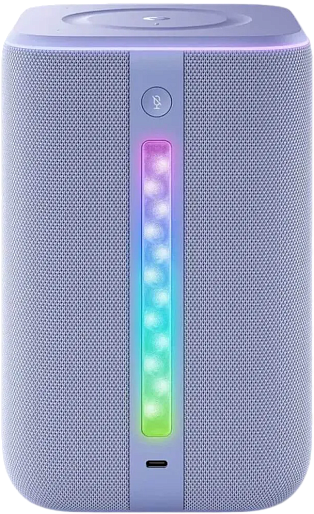 Для питания используется адаптер (через USB-C/PD), а встроенная подсветка и дисплей добавляют визуальную атмосферу: свет и информация отображаются прямо на корпусе, что повышает комфорт в домашней обстановке. Сенсорная панель помогает управлять колонкой вручную, если голос недоступен. Устройство рассчитано на питание от сети — автономный аккумулятор не предусмотрен.