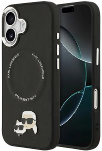 008261 Чехол Karl Lagerfeld для iPhone 17 PU NFT Karl & Choupette heads Metal pin & Cam Hard Black