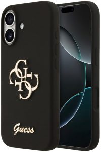 008064 Чехол GUESS для iPhone 17 Liquid silicone 4G Big and Script metal logo Hard Black